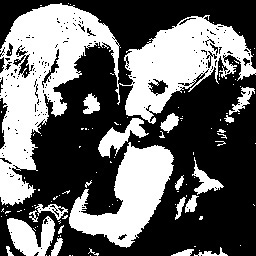 This is the result of assigning just one computer bit to each pixel in our image. We can have either black or white, with no gray tones in between. Everything below mid gray becomes black, everything above mid gray becomes white. This is how computer displays looked before graphics came along. |