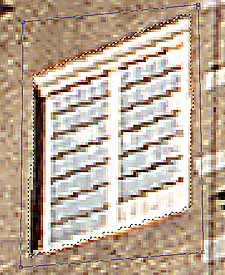 Double click the Zoom tool and take a one-to-one look at the results, using the Hand tool to pan around. One of the windows on the left has caught the sun and is burning out. The top of the window beneath it is similar but good. Use the Zoom tool to define a box around the good window. The area in the box immediately enlarges to fill the screen - so large that all the individual pixels can be seen. Select the Lasso tool (L) and click on one corner of the window. Holding down the Alt key, click in turn in the other three corners of the window. Using the Alt key makes the Lasso tool act like a rubber band, defining a line between the two points at the next click. Release the Alt key and the line automatically jumps back to the first corner, completing the selection.