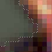 You'll soon get the hang of it, though you will also learn that this process is labour intensive - the computer cannot make the selection automatically on this image. Eventually, you will have built your selection, step by step, to cover the whole of the figure. The 'Crawling Ants' show the selected area - note that they also run along the bottom of the image and part way up the left and right sides to complete the path all around the selected area.
