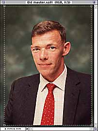 The accompanying snap was taken on transparency film, apparently in a restaurant. It's a good picture of Vic but the background is distracting. So let's get rid of it and turn the picture into a studio portrait.