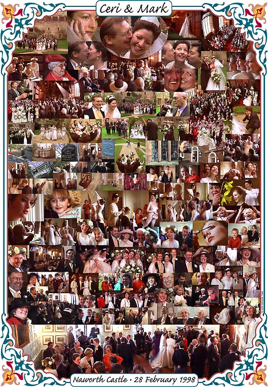 Photoshop would allow me to move and change images if I used the 'layers' function but it would become a very big file with all those images and layers. So I used QuarkXPress instead, making the page up at A2 (42 x 59.4 cm, 16 x 23 inches) as though it was a very large magazine page. The border (it was easy to resist one with silver wedding bells) is an EPS file, which means it can be enlarged to the size of a football pitch and still remain sharp. The same goes for the lettering, but not the images, which are retained as individual TIFF files.