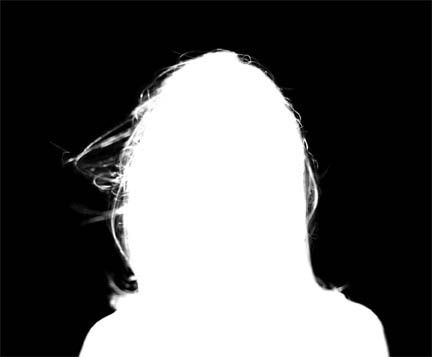 Original photograph. Note that the background is not against blue screen. Alpha channel derived from above using Ultimatte KnockOut