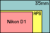 Nikon, one of the leading Japanese film camera manufacturers, has announced detailed specifications for its forthcoming D1 digital SLR camera, expected to be shown for the first time in a fully-working state with software on Monday August 30 at the Seybold San Francisco digital photography special interest day and to be available by the end of September. The D1's formidable specification and low price are destined to shake up the digital camera market in a big way. In perspective -- The Kodak connection The Nikon digital camera project was first mooted at PMA Las Vegas on 18 February 1999 -- the day on which Kodak first showed its DCS620 digital camera, based on Nikon's F5 body and produced, its label says, "In Cooperation with Nikon". Not much cooperation now, it seems: Kodak staff at PMA certainly did not see Nikon's announcement as a friendly act. However, Nikon says that it will continue to honor agreements with Kodak. The Nikon D1 is clearly intended to be a Kodak DCS620 challenger. The Fuji connection In 1995 Nikon teamed up with Fuji to produce a joint digital camera, the Fuji DS515 -- also known as the Nikon E2S. Lower-featured models were known as the Fuji DS505 and Nikon E2. This camera produces good pictures but is large, boxy and unwieldy. Relay optics -- used to reduce the 36x24mm images to fit the small CCD -- are the main reason for this bulk. Shrinking the image gives an apparent increase in sensitivity because the smaller image is brighter, though this is offset because the relay optics limit the light passed by all lenses to a widest aperture of f6.7. Worse still, not all Nikon lenses will work with the relay optics. The Canon connection Although the first two generations of Kodak digital cameras (DCS100 and DCS200) were exclusively Nikon-body based, an increasing number of photojournalists were using Canon equipment. Consequently, Kodak made a Canon bodied variant of its third generation camera, the DCS420. When Kodak introduced its fourth generation cameras in 1998, the first products -- the DCS520 and its big brother the DCS560 -- were both based on Canon bodies, not Nikon. Canon market the DCS520 themselves as the EOS D2000 but, interestingly, do not market the DCS560. Canon have not done as much as Kodak to promote the EOS D2000 and it will be interesting to see how they react to Nikon's moves. Going it alone By 1998, the world of photojournalism was largely digital and yet the only Nikon-based digital cameras were obsolescent products. It took Kodak a further year to introduce the Nikon F5-based version of the DCS520, the DCS620. Nikon must have realised that this would lead to further loss of market share. They could not allow their future to depend on Kodak and had no alternative but to look elsewhere. But to whom? What we do know about the CCD sensor The D1 features a 23.7x15.6 mm CCD - a 2.74 megapixel area array CCD with 2,012 x 1,324 active pixels. Image size is 2,000 x 1,312 pixels, captured at a depth of 12 bits per pixel. No relay optics are used to "shrink down" the 36x24mm image produced by the lens to the size of the CCD -- as in Nikon's previous digital SLR collaboration with Fuji -- so there is an apparent lengthening of the focal length (narrowing of angle of view) of lenses by a factor of 1.5x when compared with their use on a 35mm film camera. The picture aspect ratio is 1.5 to 1 - the same as a frame of 35mm film -- and the CCD size is close to the 30.2x16.7mm frame size of APS. ![]() This diagram shows the comparative sizes of the Nikon D1's CCD (pink), a frame of APS film (yellow), and a frame of 35mm film (blue). (On a 72 pixel per inch monitor this will be displayed at actual size.) Note that the Nikon D1 frame area is close to that of APS but less than half the area of a frame of 35mm film. New lenses ![]()